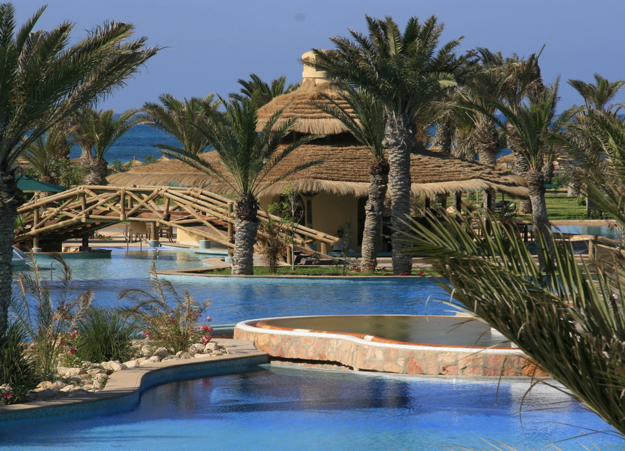 Die exklusive und architektonisch beeindruckende Anlage liegt in einem weitläufigen Palmengarten direkt am Hotel eigenen Strand. Zu den Einrichtungen zählen Hauptrestaurant, mediterranes a-la-Carte Restaurant, tunesisches a-la-Carte Restaurant, Snack-Barbecue Restaurant, maurisches Café und Lobby-Bar. Boutique, Friseur. Nightclub.Gepflegte Gartenanlage mit großzügiger Poollandschaft (3.400 qm) bestehend aus Meerwasser-, Süßwasser- und Thermalpool (eisenhaltig). Poolbar. Sonnenschirme, Liegen mit Auflagen und Badetücher am Pool und am Strand sind frei.