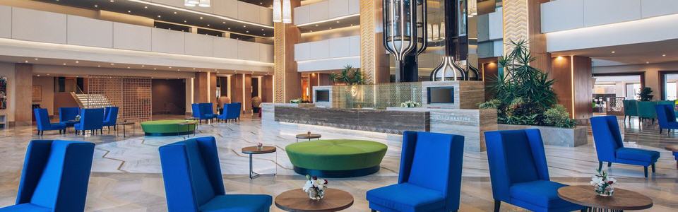 Zu den Annehmlichkeiten des Hotels gehören die schöne Empfangshalle mit Rezeption und Lobbybar. Außerdem verfügt das Hotel über ein Hauptrestaurant und ein tunesisches sowie ein italienisches Themenrestaurant. ( Eine Reservierung ist für beide Restaurants erforderlich).Verschiedene Bars, Shop und einen Fitnessraum sind ebenfalls vorhanden.